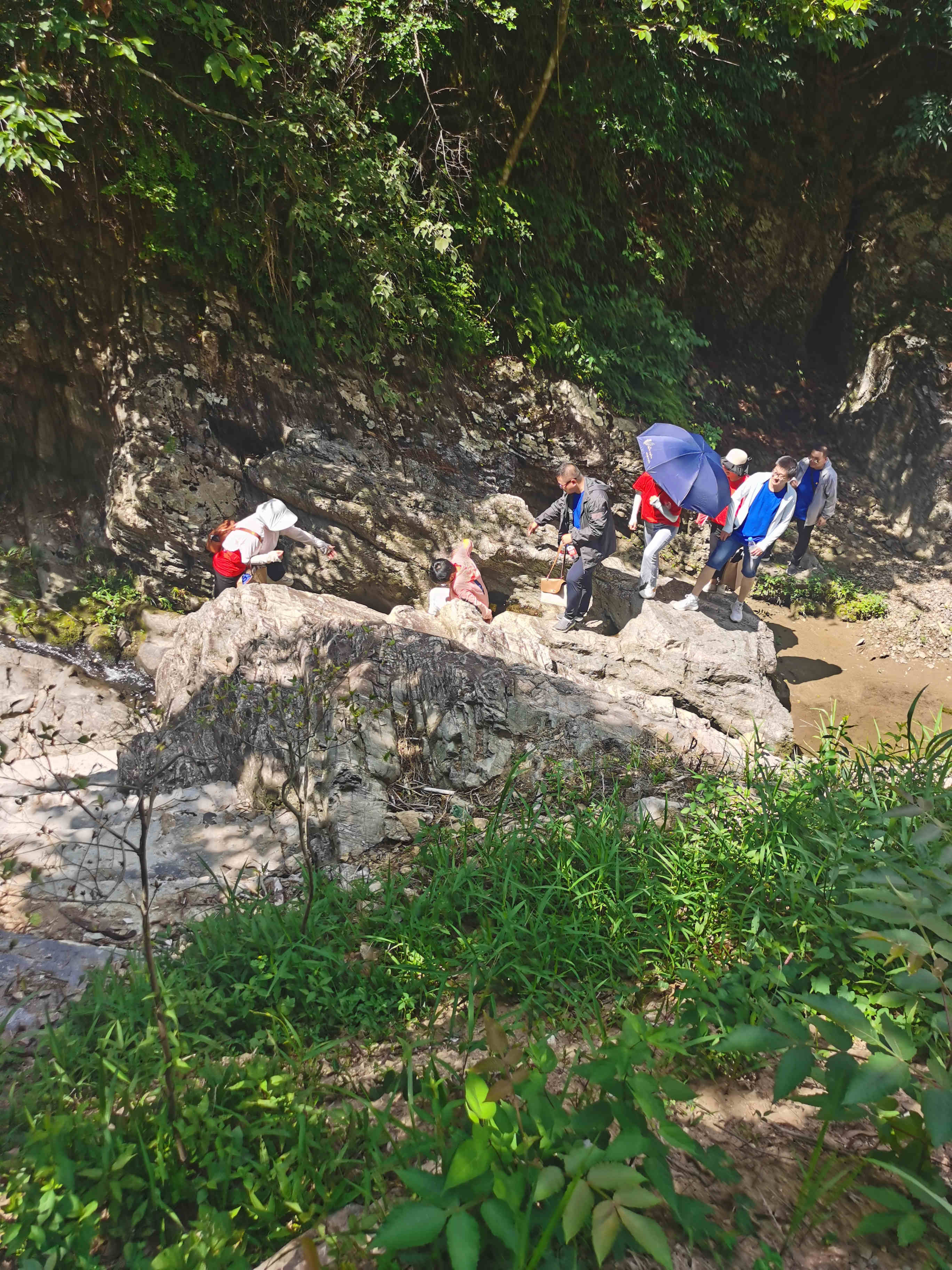 早上10點(diǎn)左右所有人員安全到達(dá)目的地,大家下車后紛紛走進(jìn)狼谷。這里環(huán)境清幽、植被繁茂,奇石、幽潭、飛瀑、清泉星羅棋布,是一處絕佳的探險(xiǎn)勝地。全程4.5公里,山路崎嶇陡峭,大家相互鼓勵(lì)、相互幫助,歷經(jīng)兩個(gè)小時(shí)登上山頂,展現(xiàn)了國(guó)耀人健康、團(tuán)結(jié)、昂揚(yáng)的精神面貌。